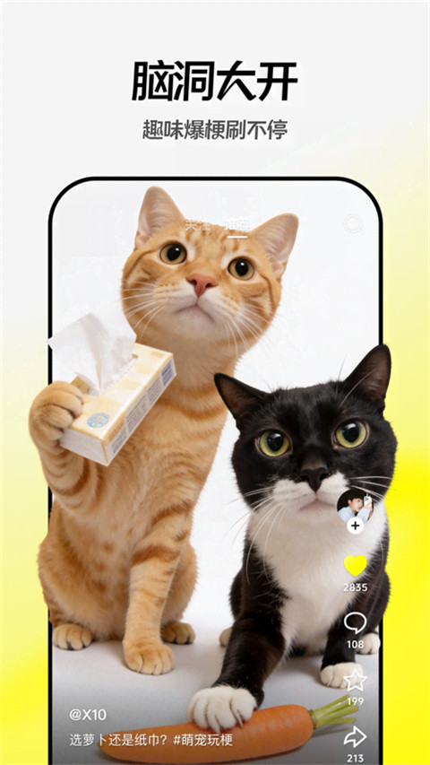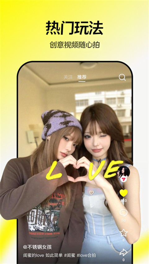 2、社交活跃用户:爱参与挑战、与好友互动,利用“真人+虚拟形象”双轨模式合拍趣味短片,增强社交趣味性。