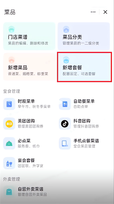 3、点击"新增套餐"选项,进入新增套餐页面;