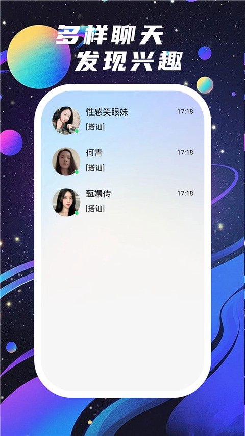 全新升级的交友聊天软件,干净整洁的应用风格,可帮助每个用户都能畅快社交;