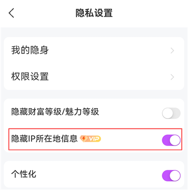 3、开启【隐藏IP所在地信息】开关。