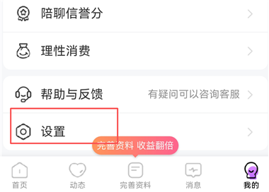 1、我们来到【我的】页面,点击【设置】。