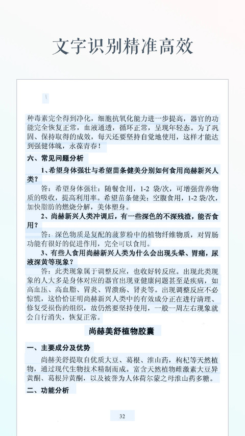 1、拍照识别功能强大,OCR智能扫描提取文字,速度快且精准,