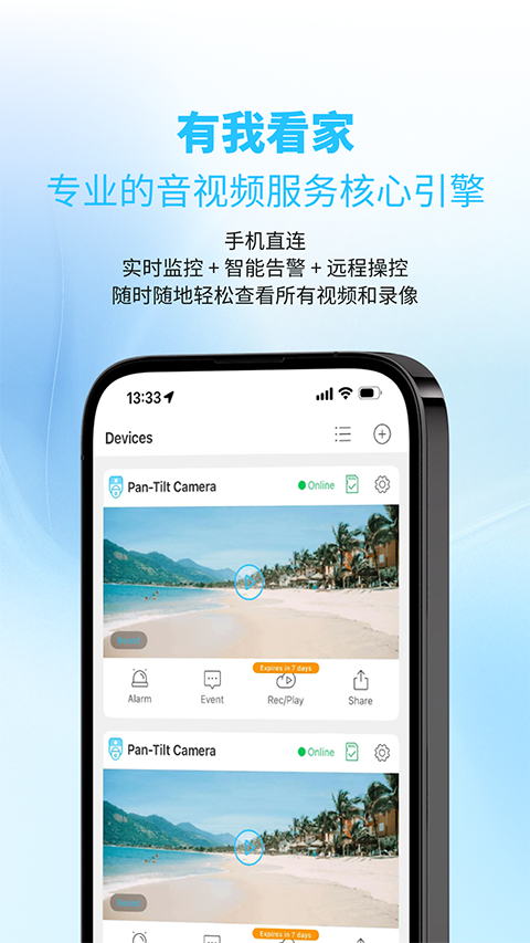 有我看家app是一款远程视频监控软件,它通过与家里摄像头连接能够实时查看家里的情况,而且还支持回放查看功能,随时了解家里情况,保证财产安全,软件还提供实时对讲功能,远程喊话对讲,保证老人小孩的安全,此外还能与家庭共同使用一个监控设备或者一个用户连接多个摄像头,非常的灵活方便。