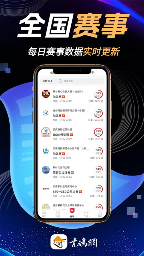 青鸽网app是一款专为赛鸽爱好者打造的专业资讯与服务平台,用户可以在上面查看最近的赛鸽赛事,历史赛事以及直播视频等,所有赛事信息及时通告,让用户能够提前了解做出规划,还能绑定个人赛鸽信息,查看对赛记录,成绩排名等相关信息,还可以与鸽友们互相交流,线下赛鸽。