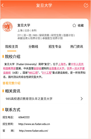 3、我们随意点击一个院校,里面有非常院校简介、分数线、招生专业、招生电话等等详细信息
