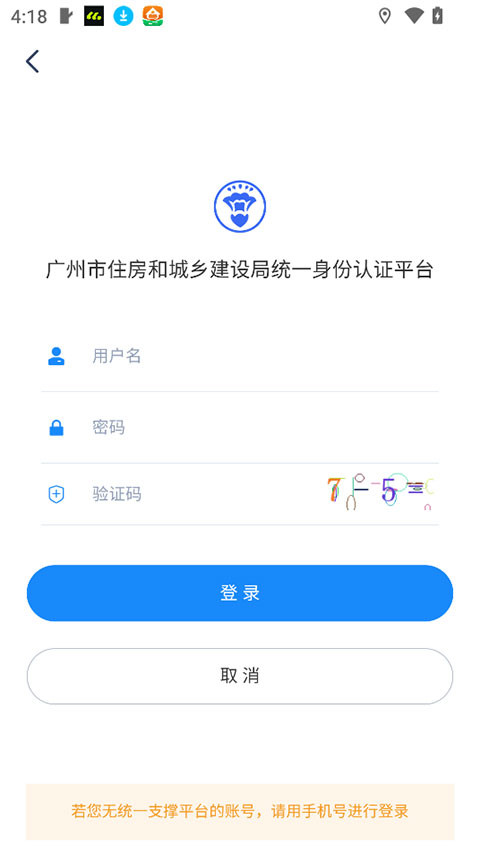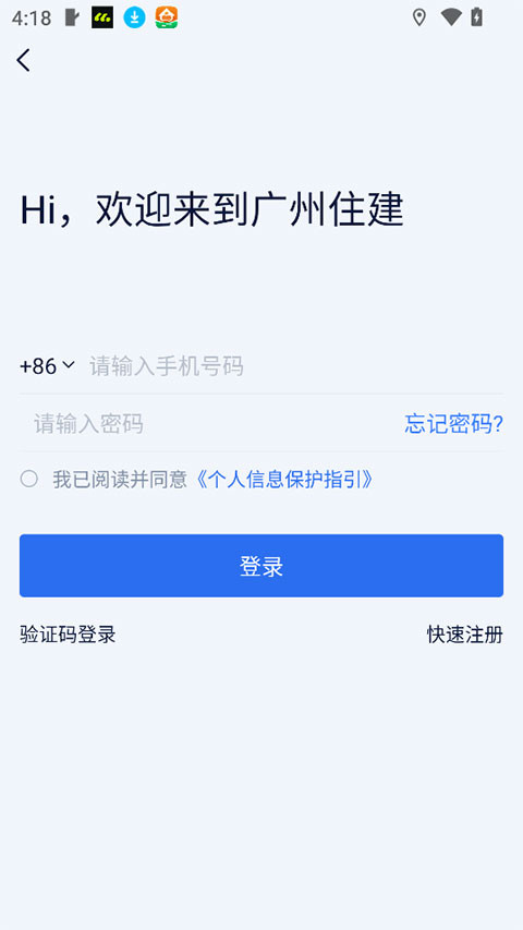 1、安装完广州住建App后,进入App界面,首先需要用手机号注册账号。