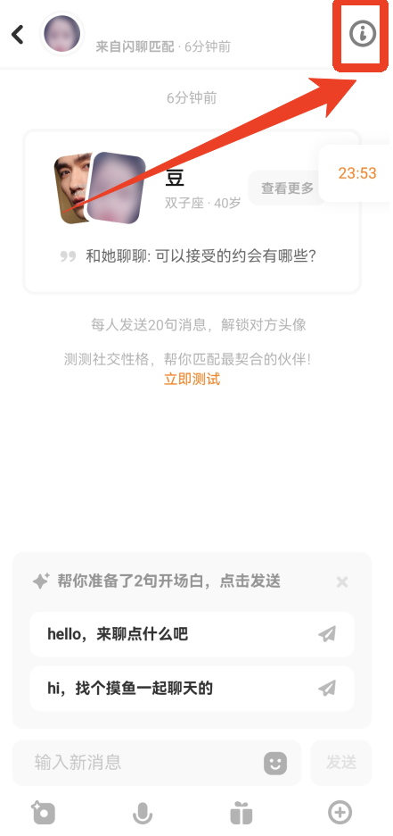 1、在聊天界面点击右上角的图标。