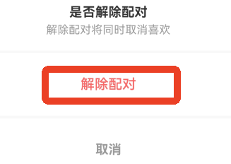 3、再点击红色字的【解除配对】,解除配对将同时取消喜欢。