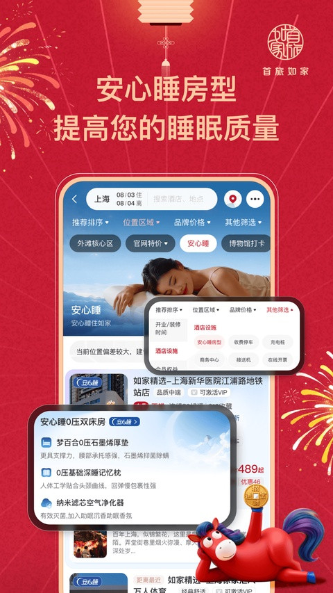 2、预订酒店支持安心睡房型升房券;
