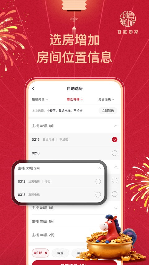 2、自助选房:在线室内地图选房、文字选房,直接到酒店入住即可;