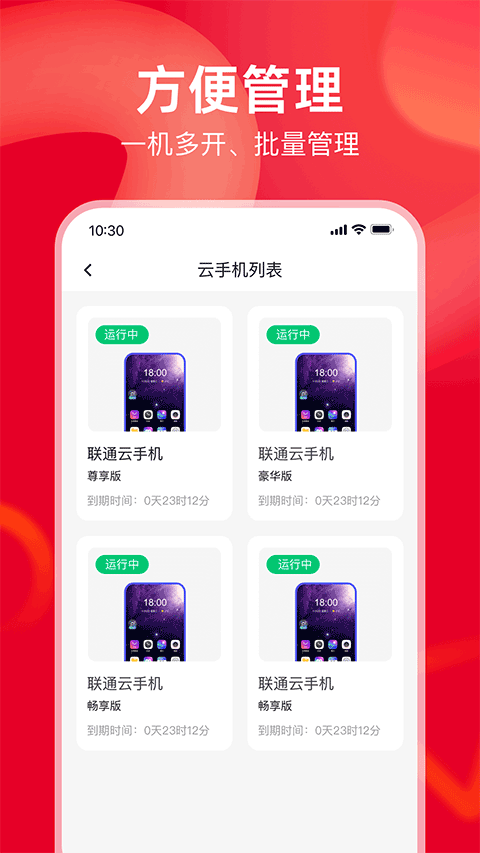 便捷云端管理:用户可以随时随地通过任意设备管理和控制云手机上的应用程序、文件等。
