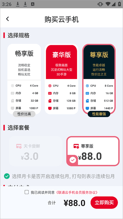 购买时可以勾选是否连续包月,支付方式有支付宝、微信支付