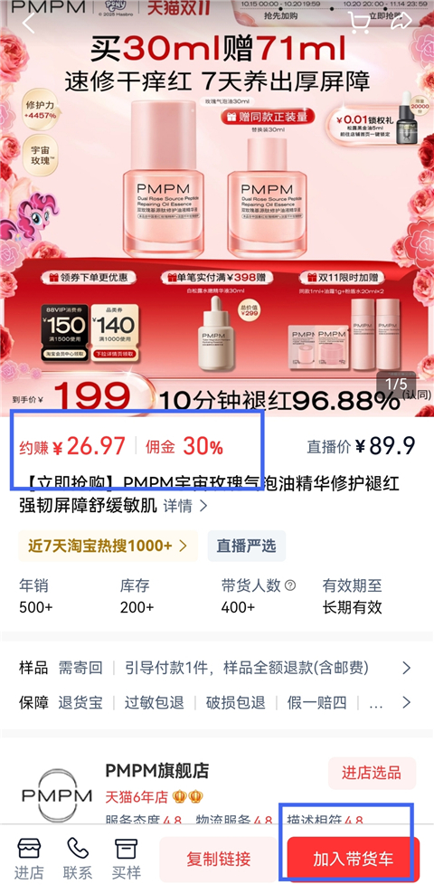 2、进入详情页,用户可查看到带货的佣金,点击【加入带货车】。