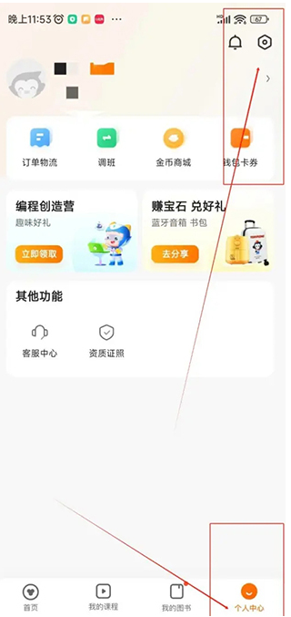 1、打开猿辅导素养课app,在主界面点击右下角的“个人中心”