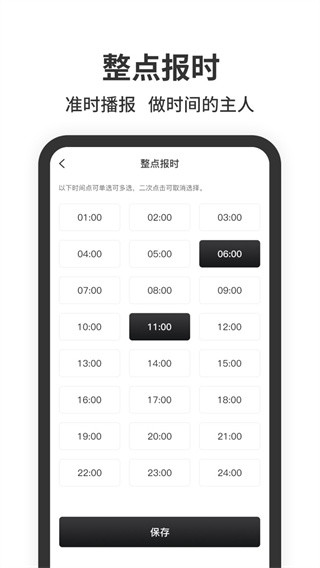 整点报时:整点语音报时,每小时语音提醒报告时间