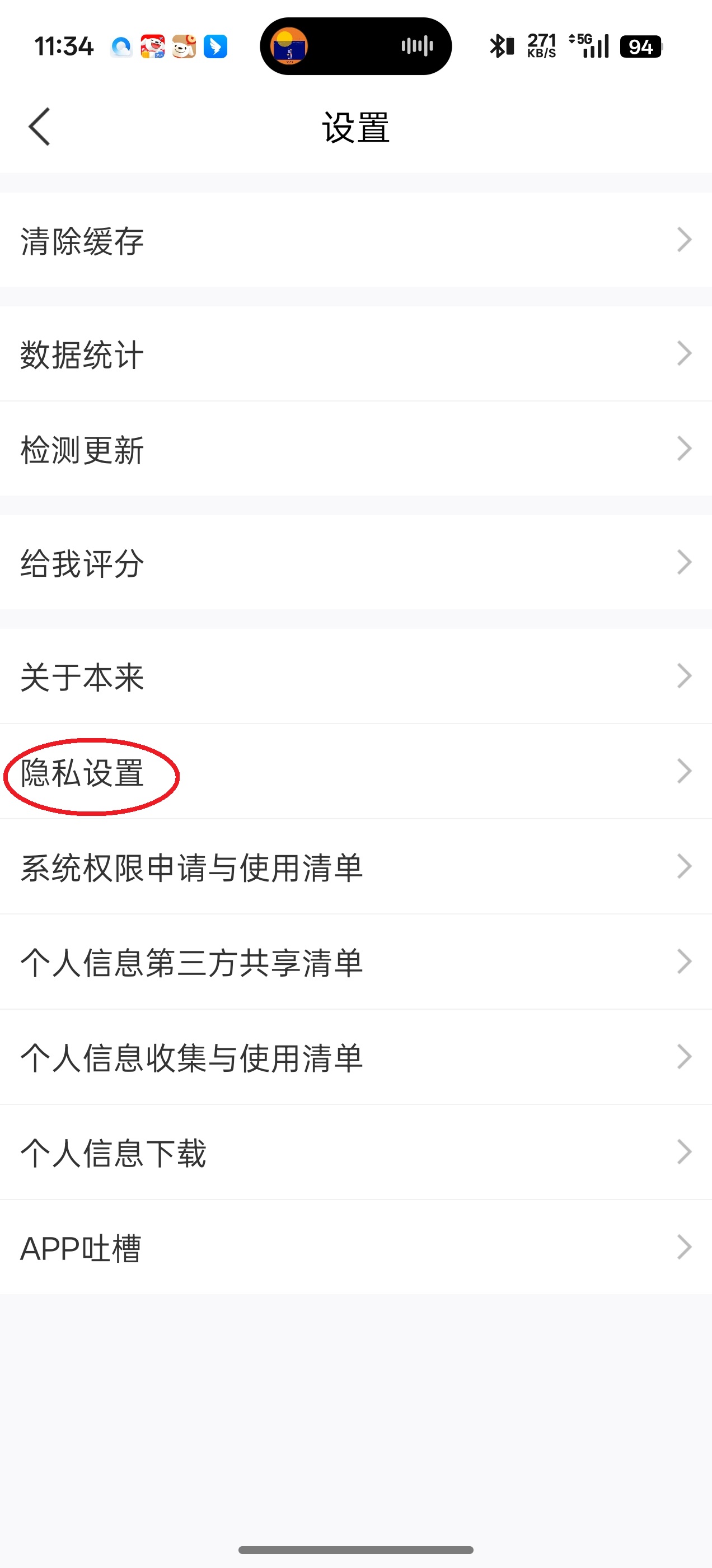3、随后点击“隐私设置”。