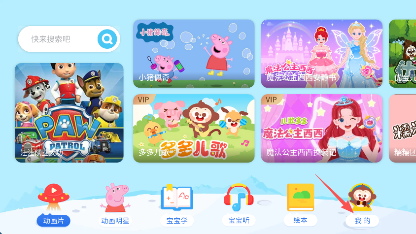 2、动画片首页增添搜索框,小朋友查找喜欢的儿歌动画更方便哦;