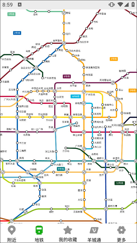 1、进入广州实时公交软件后,在附近就能显示当前的公交站点