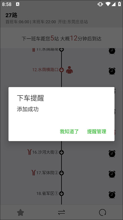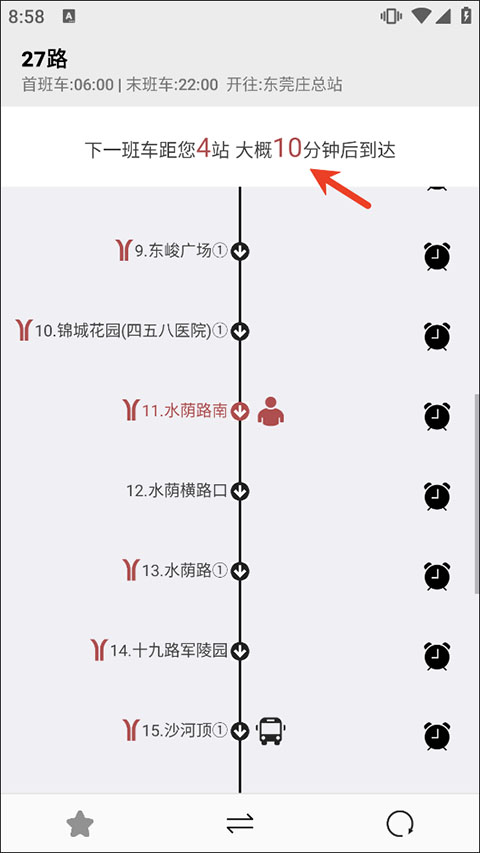 3、可以点击要到达的站点旁边的闹钟来提醒我们