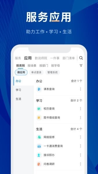 整合校内多项服务应用入口,方便用户在一个客户端内访问所需服务,减少跳转操作,提升使用体验。