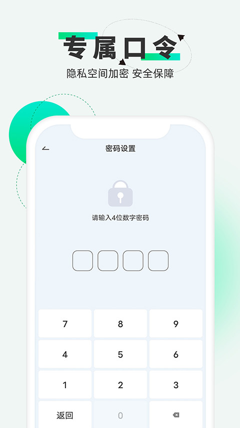 5、口令保护:打开伪装的图标后需要输入正确的口令并确认后才能进入隐藏空间。