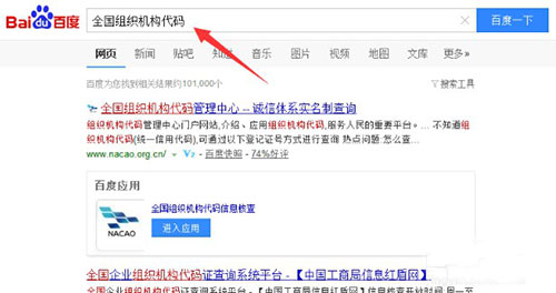 2、首先打开百度,搜索全国组织机构代码,点击第一个进入;