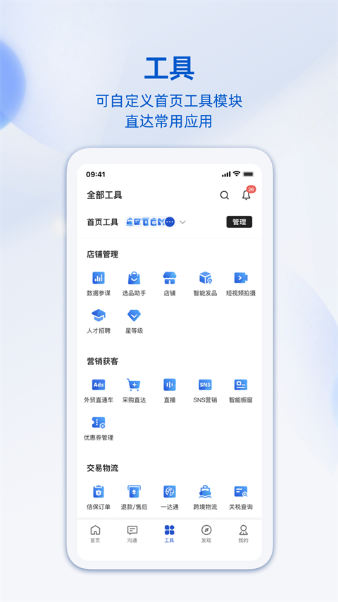 阿里卖家国际版app是一款为电商卖家设计的管理平台,它能帮助卖家运营店铺,处理订单,优化商品,分析数据,提升效率,碎片化时间管理等等,是一款功能强大的电商助手,根据商家的不同阶段数据情况还能绘制出智能动态展示画面,让用户更好的了解行情和潜在买家,辅助用户更好地决策。