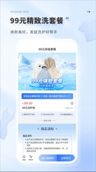 智能下单:只需轻触屏幕,便可轻松完成洗护服务的预约与支付,大大简化了传统洗衣店繁琐的操作流程。