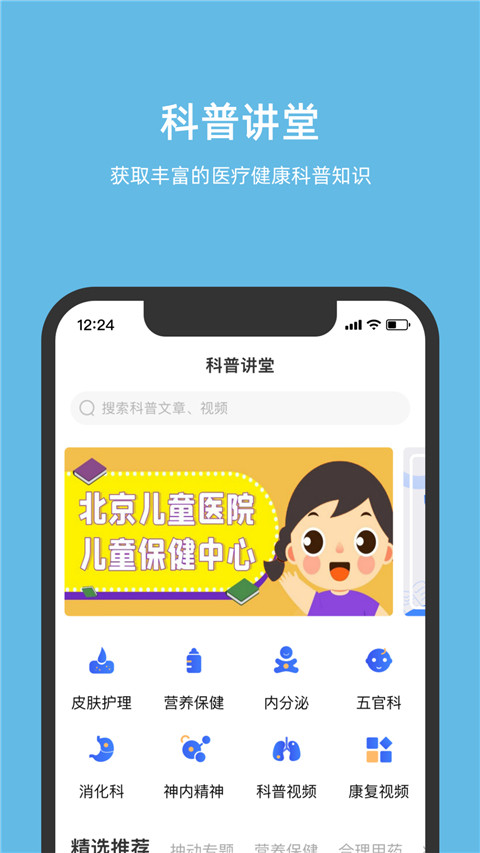 北京儿童医院app是一款由首都医科大学附属北京儿童医院推出的一款线上医院服务软件,家长们可以直接在软件上挂号,省去了排队的过程,还可以绑定就诊卡,绑定之后可以直接在软件上查看各种医疗信息如体检报告,检查报告等等,此外,软件上还有各种儿童健康科普,有问题的父母也可在平台直接咨询。