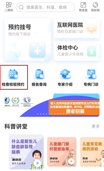 1、点击首页的【检查检验预约】,同意预约检查注意事项。