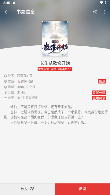 智能分类书架:按在读、已读完、收藏等标签自动归档书籍,支持自定义分组命名。