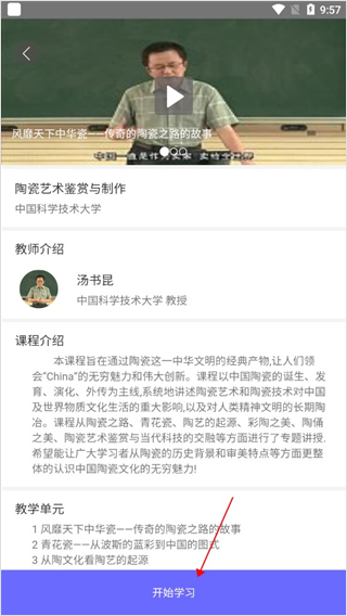 4、点击之后我们就会进入到课程详情界面,在该界面点击屏幕下方的“开始学习”按钮。