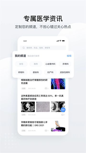 2、智能内容聚合机制将资讯、指南、病例及药品信息统一管理,提升信息获取效率;