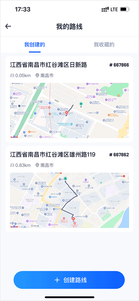 4、最后在我的路线页面就可以看到该路线以及创建完成了。