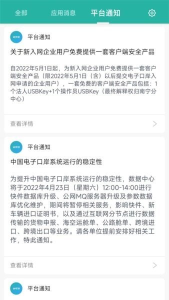 平台通知模块用于实时推送电子口岸及相关政策信息,确保用户能够及时掌握最新动态和重要通告。