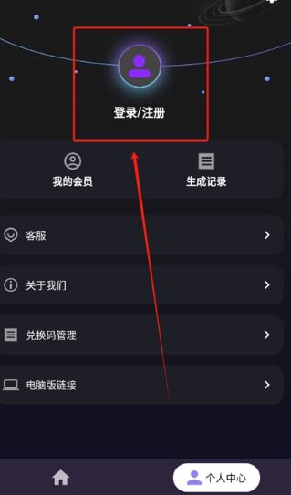 1、在本站下载安装软件,进入个人中心页面,点击登录/注册
