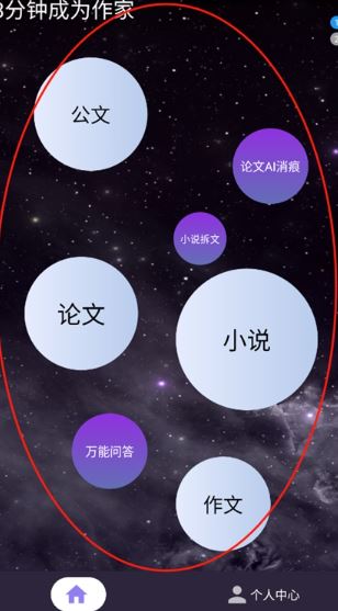2、打开软件进入主页,可以根据自己的需求选择不同的写作功能