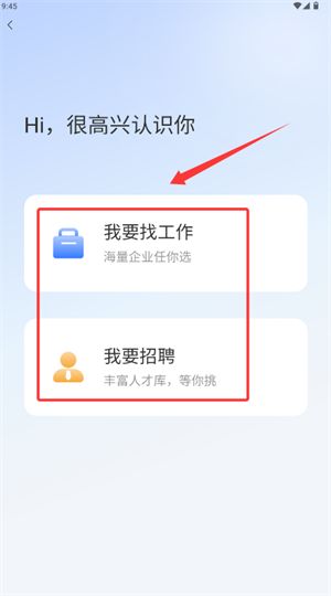 1、启动应用后,在首页根据需求选择求职或招聘功能入口进入。