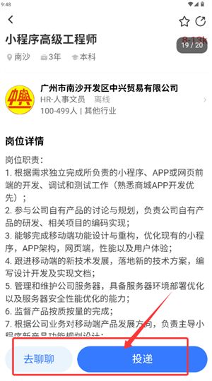 3、浏览到合适岗位如工程师,可进入详情页发起沟通或提交简历。