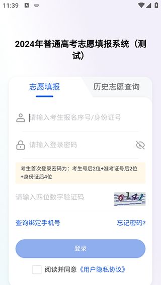 需要输入考生报名号等相关信息来登录后即可进行志愿填报使用。
