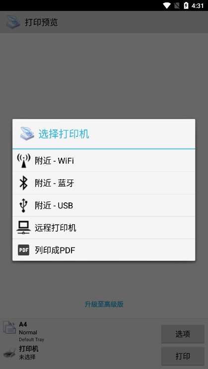 2、可通过WiFi、蓝牙、USB或互联网选择打印机;