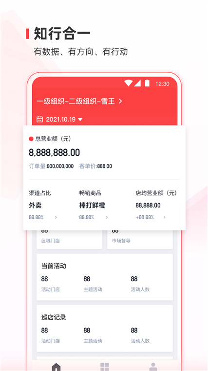 【经营数据】向伙伴同步责任区域或组织范围内的经营数据及相关明细,掌握数据动态,了解数据构成,呈现数据细节,以便于更好的开展和规划下一步工作内容。