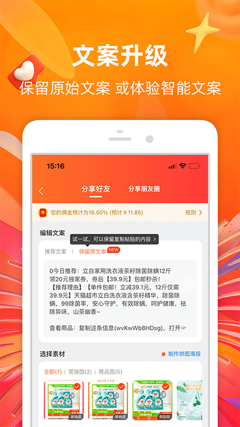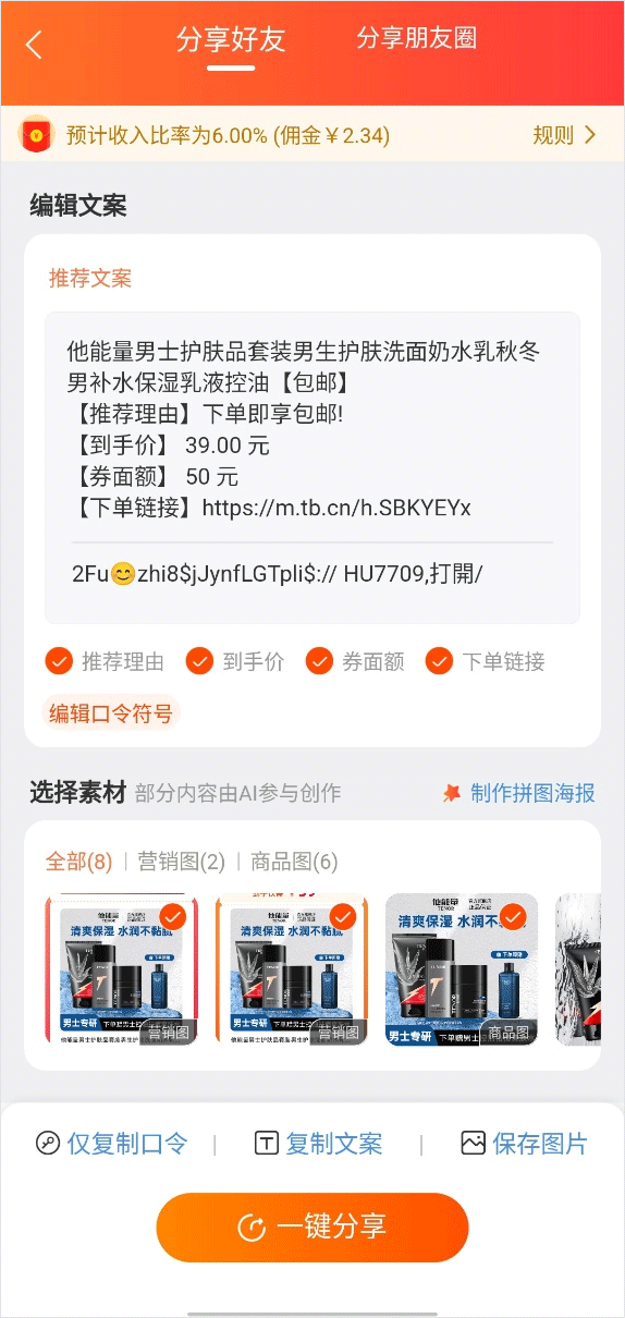 4、再把这个商品的分享链接分享出去,好友通过这个分享出去的链接下单,我们就可以赚钱