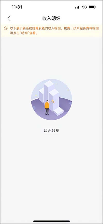 2、进入收益界面,在此界面可以看到全部订单统计以及可提现金额,我们点击屏幕中间的“账单明细”按钮