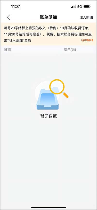 3、进入账单明细页面,再点击屏幕右上角的“收入明细”按钮