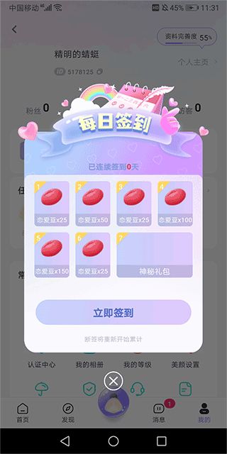 3、平台还有签到、做任务、邀请好友方式来赚取平台恋爱豆,这些恋爱豆是可以直接用来聊天,或者直接提现赚钱的