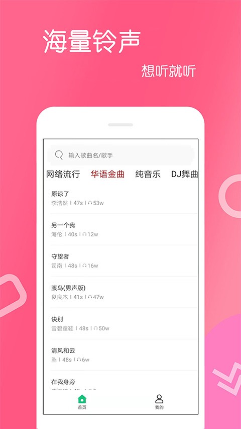 有网络流行、轻音乐、DJ、欧美日韩、时下热播剧、恶搞、摇滚等火热铃声,汇聚各大明星来电歌曲。