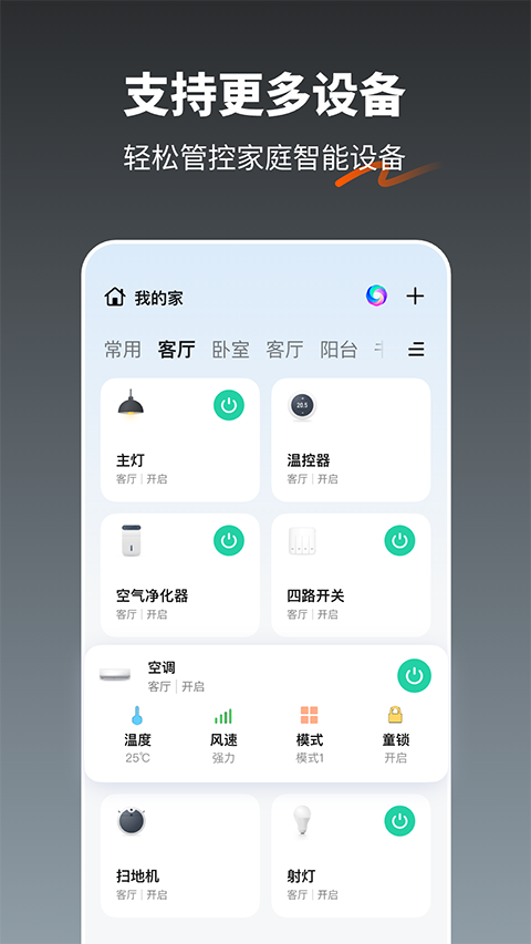 5、稳定的连接、快速的响应,让你随时随地实现对智能设备的操控,实时掌控家中设备状态