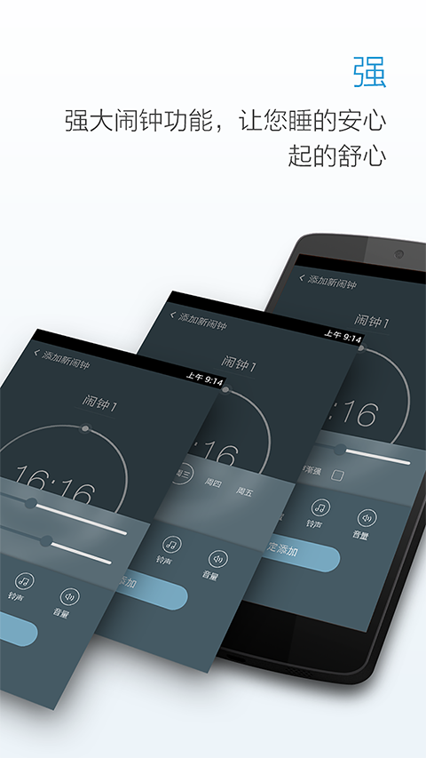 1、最美闹钟app下载安装最新版本免费设置抛弃了传统的数字输入,采用手指滑动进行闹钟设置,给用户带来舒适的手指体验;