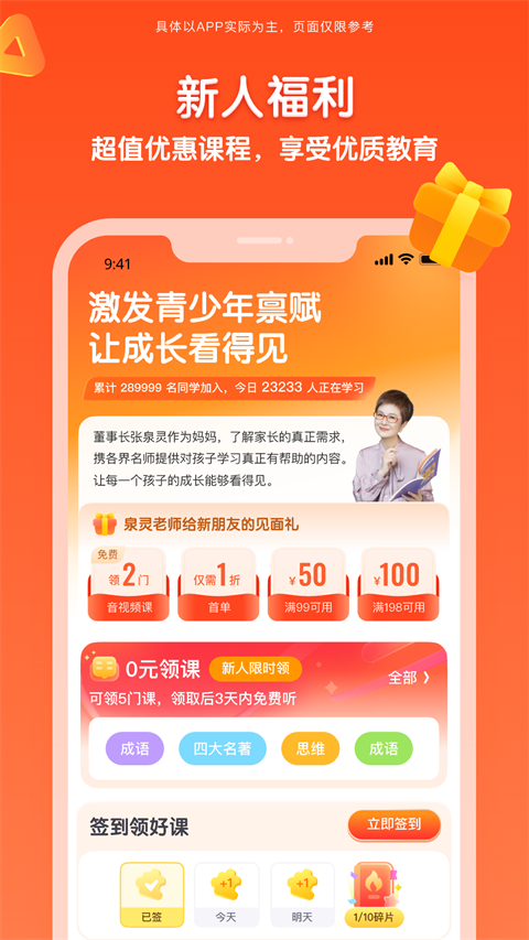 1、需要是新用户,进入少年得到点击新同学免费领页面